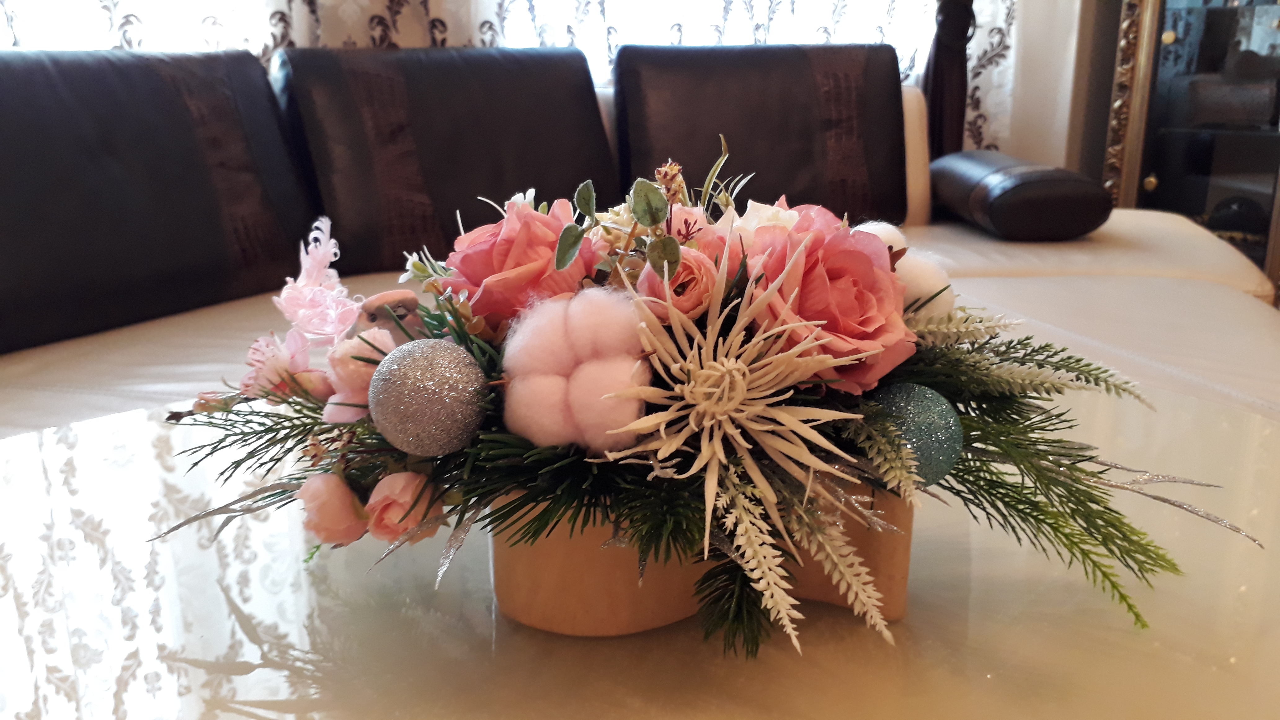 Нежная зима композиция для украшения новогоднего стола